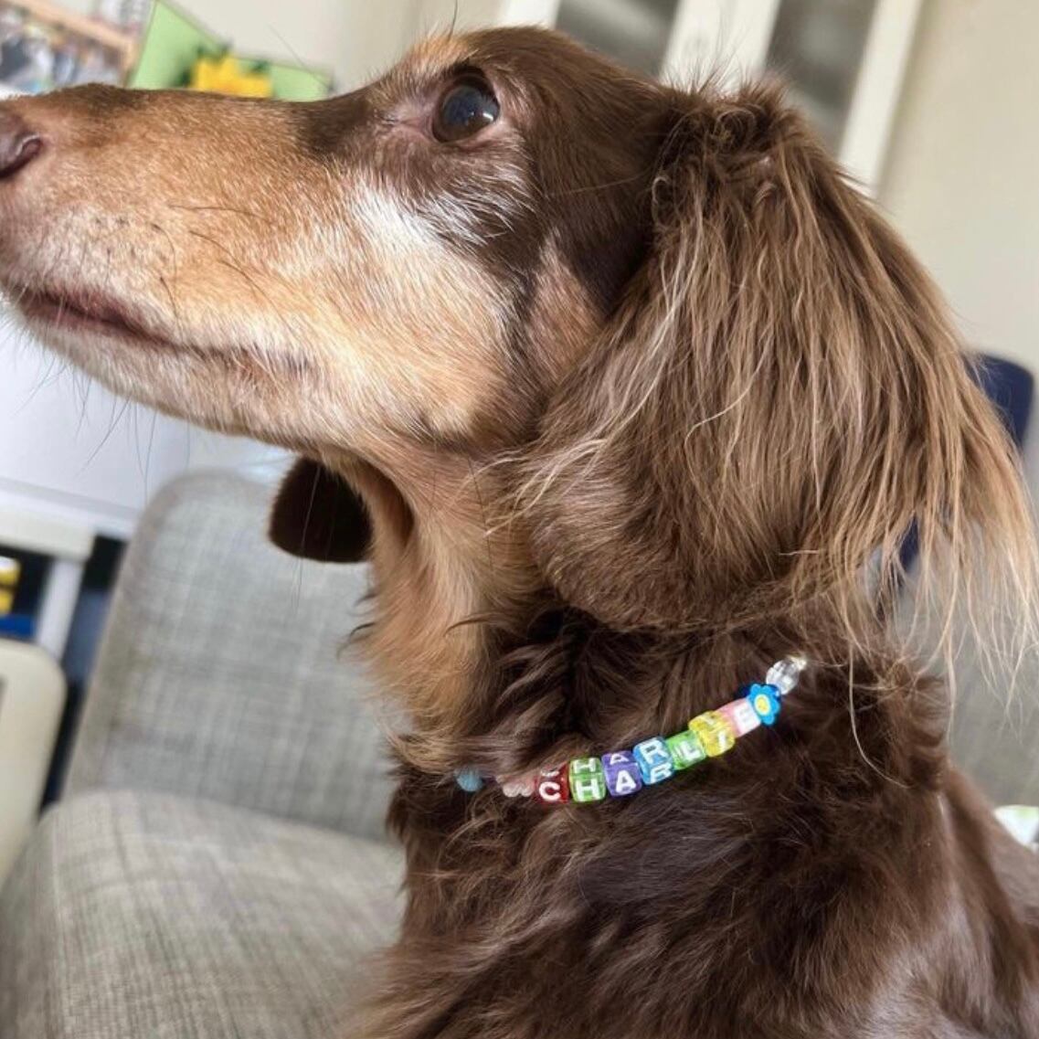 わんちゃんねこちゃんうさぎちゃんの名前、自分の名前、お子さんや大切な人の名前、いつも一緒にいたい言葉などアルファベット8文字以内でご自由にお選びいただけます。